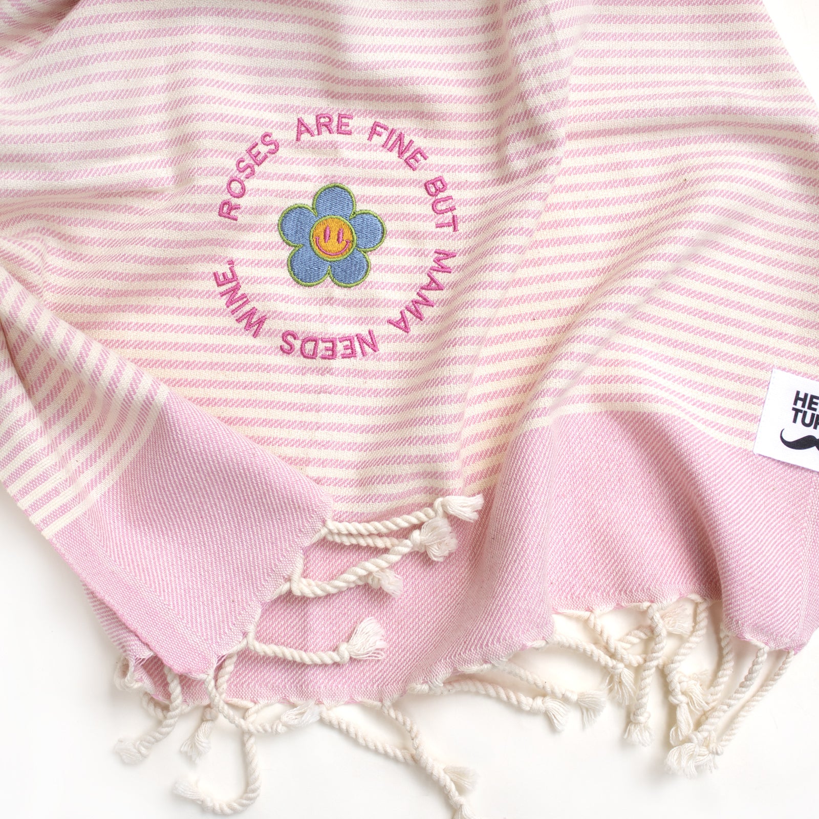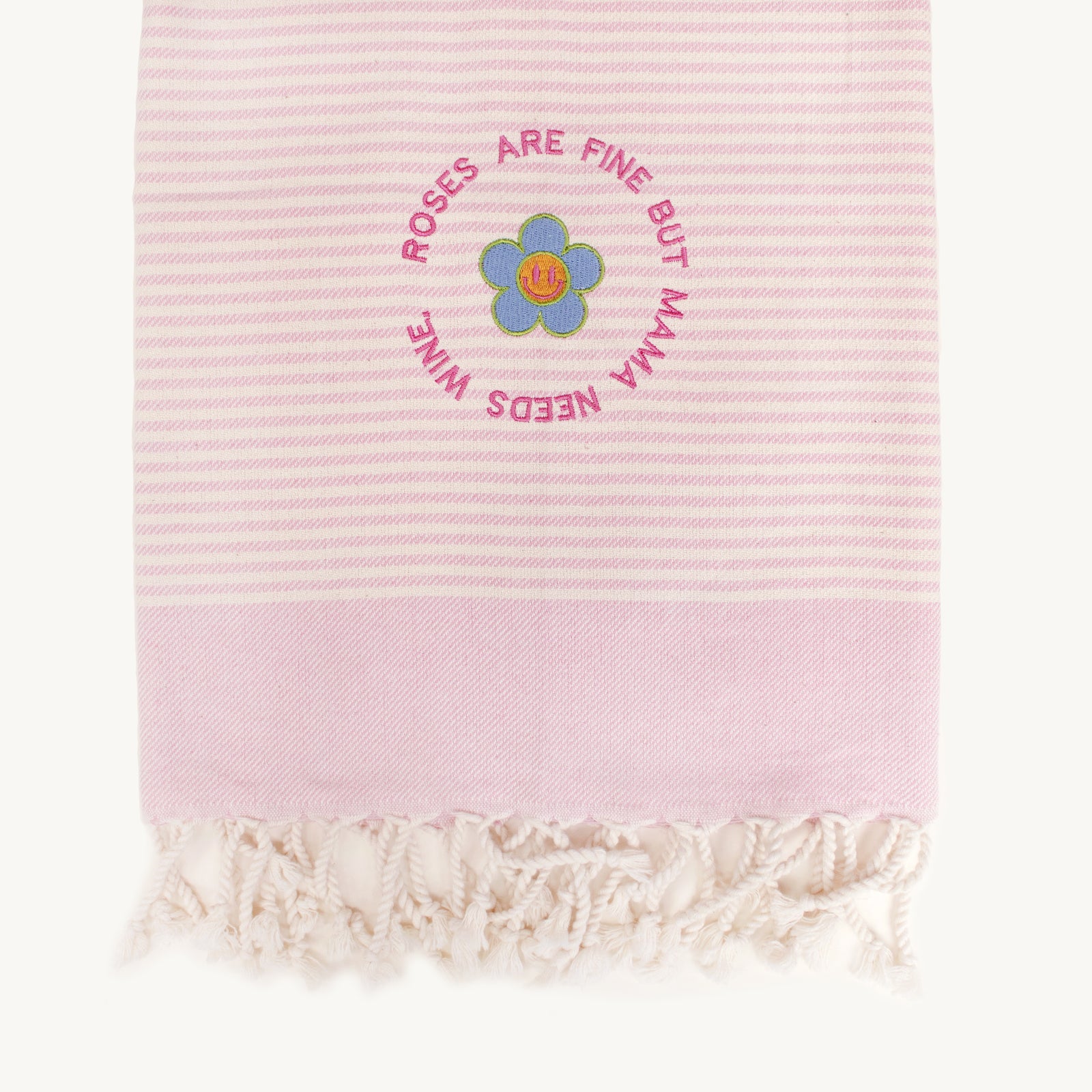 "MAMA NEEDS WINE" Embroidered Hammam Towel