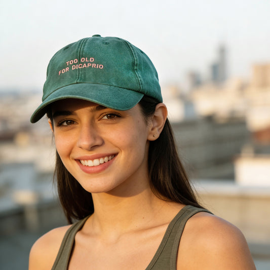 Personalized Vintage Forest Green Cap "Too Old For DiCaprio"