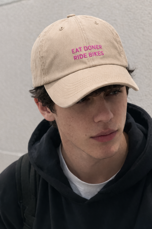 Personalized Vintage Beige Cap "Eat Doner Ride Bikes"