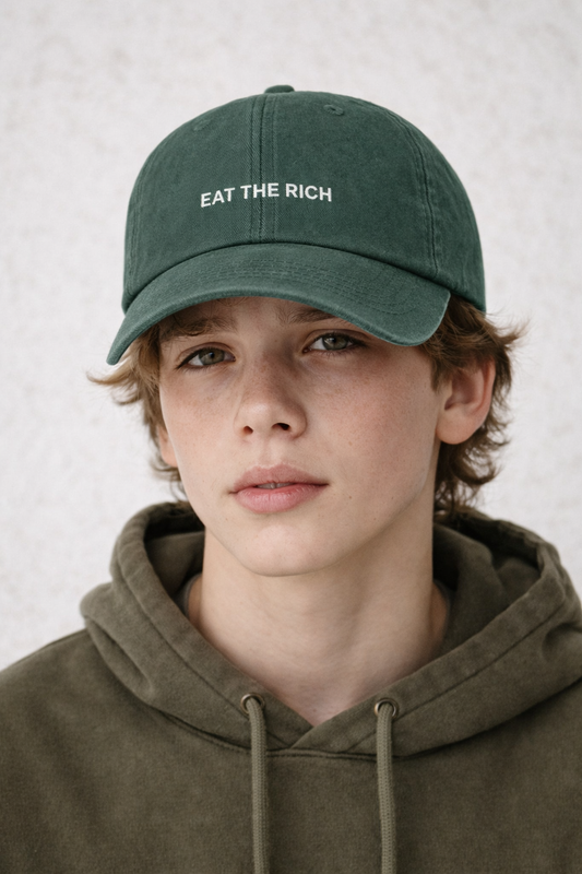 Personalized Vintage Forest Green Cap "Eat The Rich"