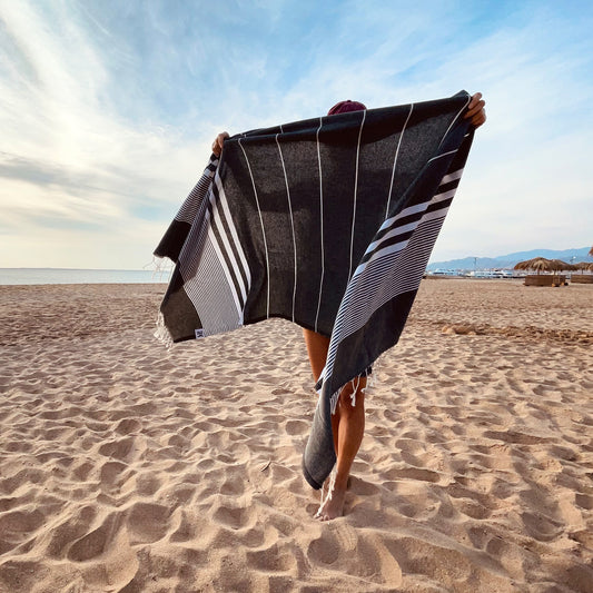 BLACK STRIPES XS Handwoven Organic Cotton Hammam Towel