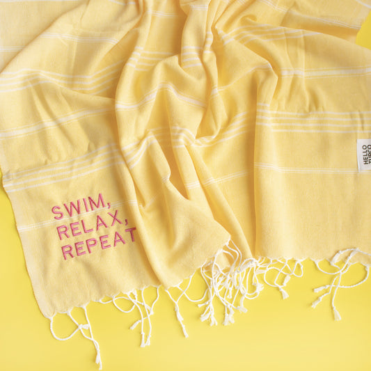 "SWIM, RELAX, REPEAT" embroidered Hammam Towel