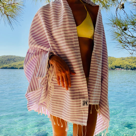 LILAC STRIPES XS Handwoven Organic Cotton Hammam Towel