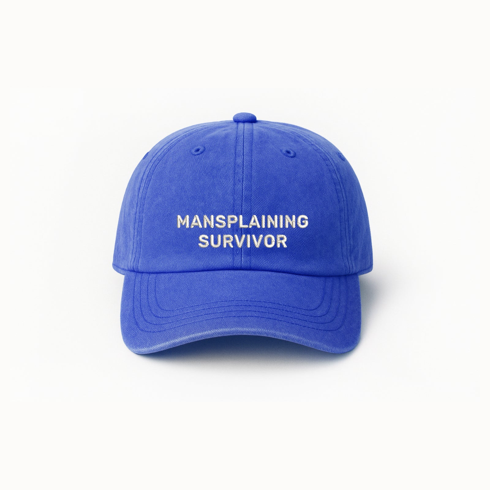 The bold baseball cap with the embroidered phrase “Mansplaining Survivor” is the perfect accessory for everyday wear or leisure, letting you showcase your personality with a humorous statement. This unisex cap features a trendy vintage stonewashed look and an adjustable metal buckle for a perfect fit. Made from high-quality, breathable fabric, it is comfortable and durable.