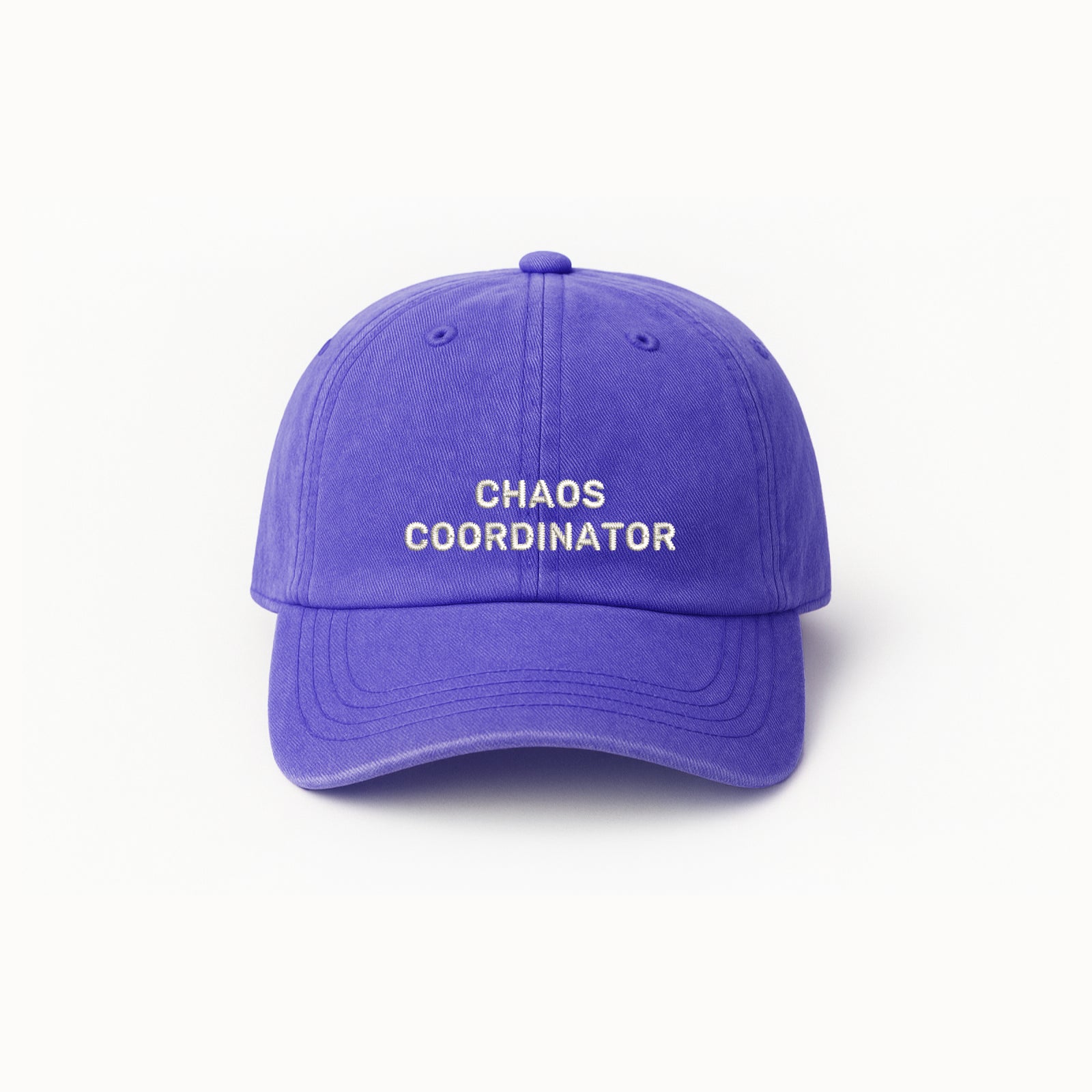 The stylish lilac baseball cap with the embroidered phrase “Chaos Coordinator” is the perfect accessory for anyone who keeps things under control – at work, in daily life, or just for fun. This unisex cap stands out with its trendy vintage stonewashed look and features an adjustable metal buckle for a custom fit. Made from durable, breathable fabric, it’s comfortable to wear and built to last.