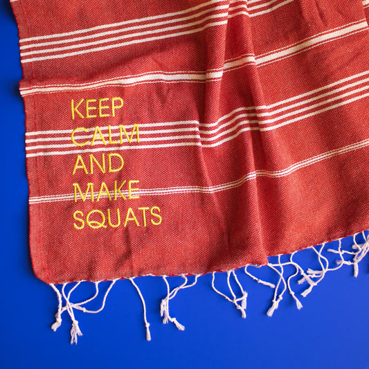 "KEEP CALM AND MAKE SQUATS" Embroidered Hammam Towel