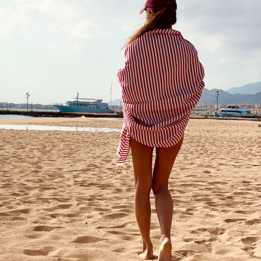 HAMAM TAMAM Black & Red – Classic Turkish Towel Set For Beach & Sauna