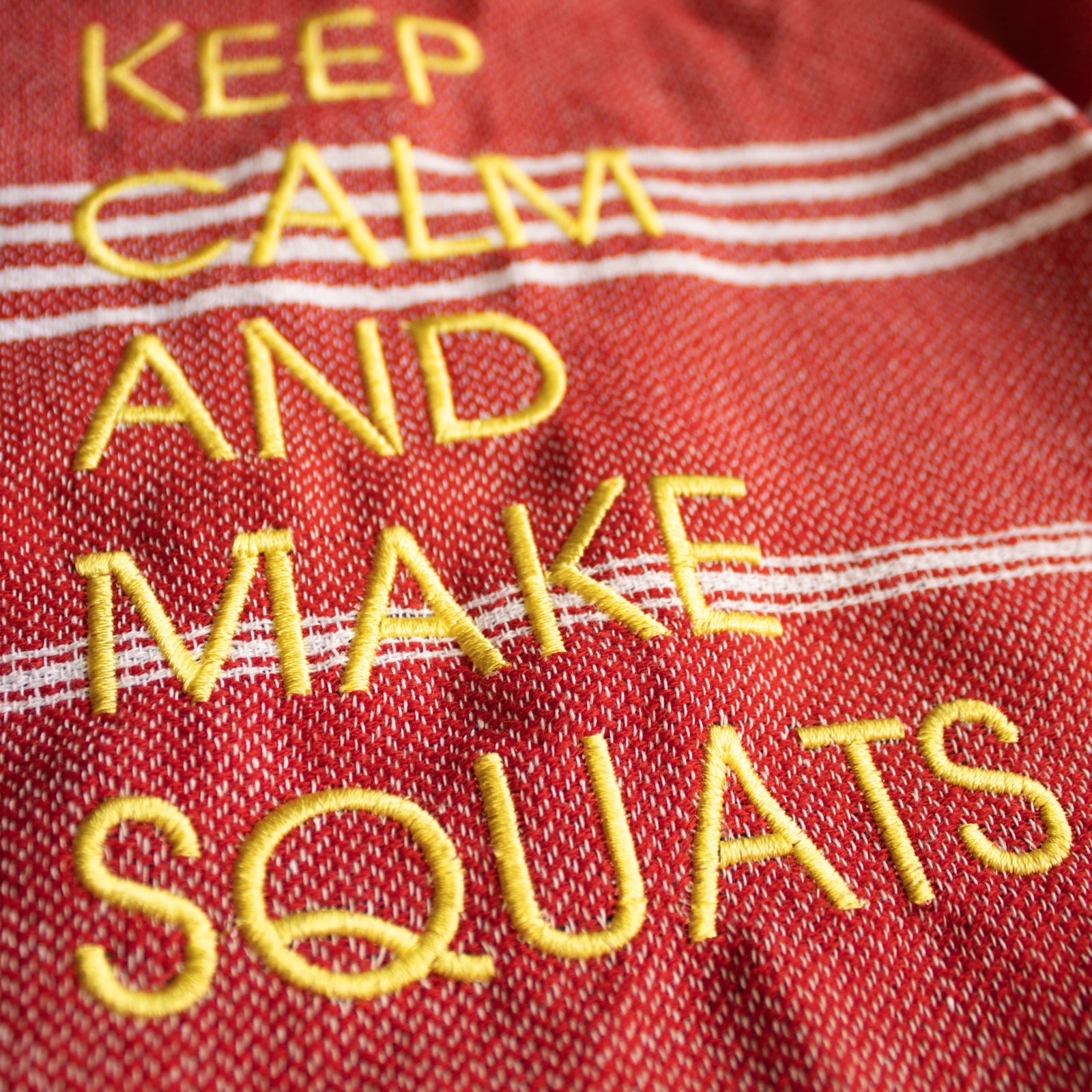 "KEEP CALM AND MAKE SQUATS" Besticktes Hamamtuch
