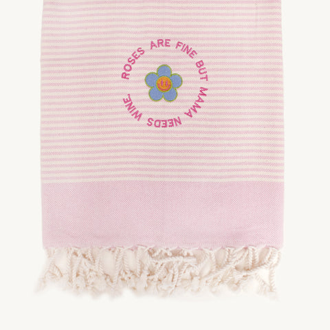 "MAMA NEEDS WINE" Besticktes Hamamtuch